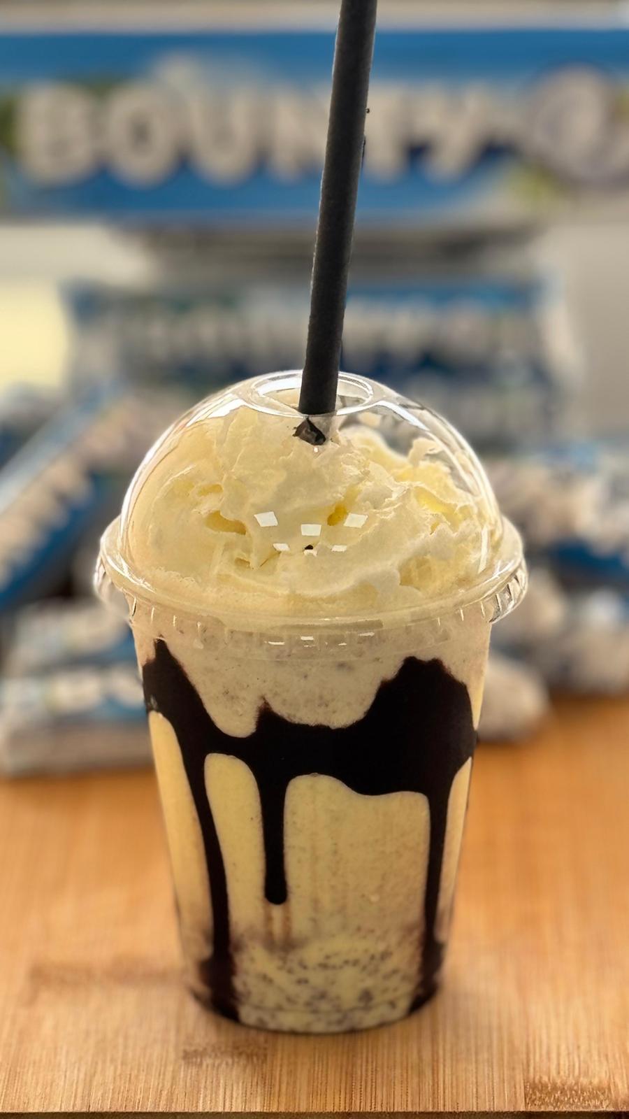 Batidos de helado de vainilla, leche y tu chocolate favorito acompañado de sirope de chocolate y nata